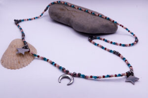 Kilka słów o samych wyrobach – przede wszystkim, wszystko jest robione ręcznie z najwyższej jakości materiałów. Nie stosujemy plastikowych koralików. Używamy japońskich koralików TOHO i Fire Polish oraz kamieni naturalnych. Zawieszki w większości są ze stali chirurgicznej.