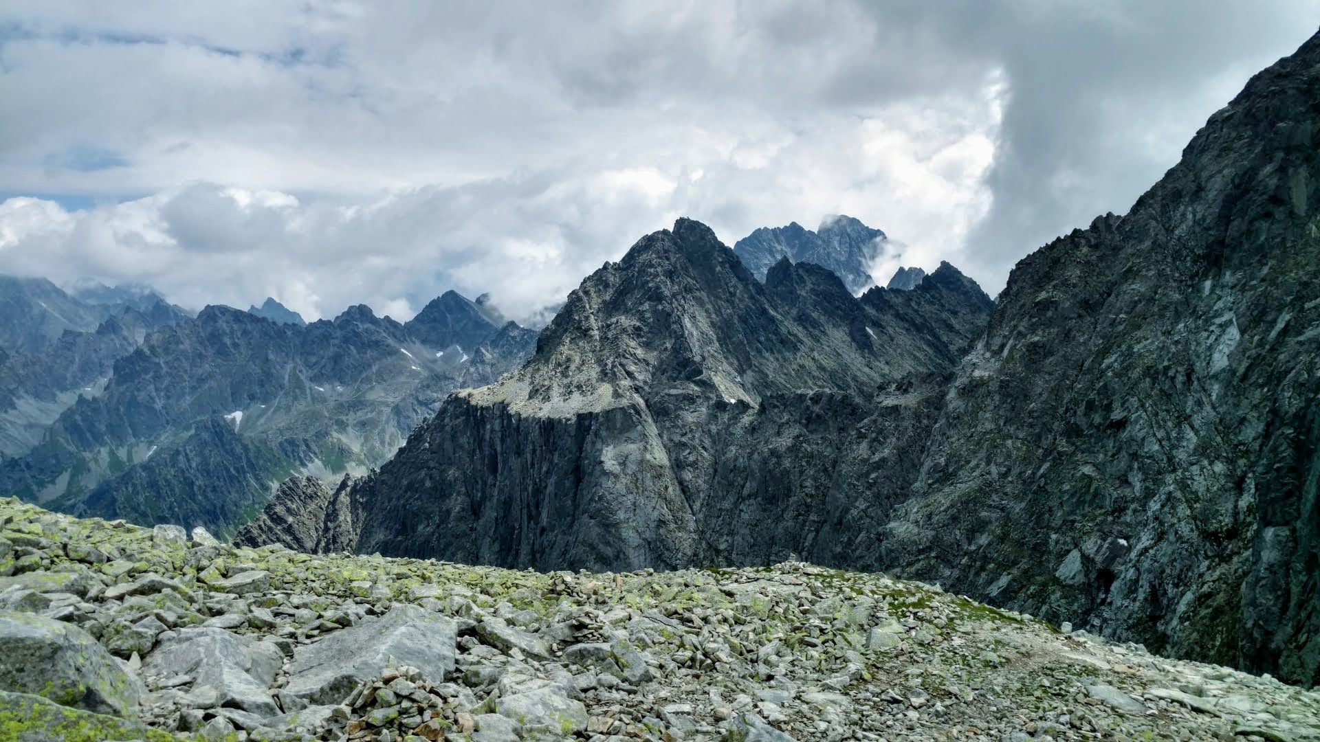 Widok na skalne szczyty Tatr Słowackich.